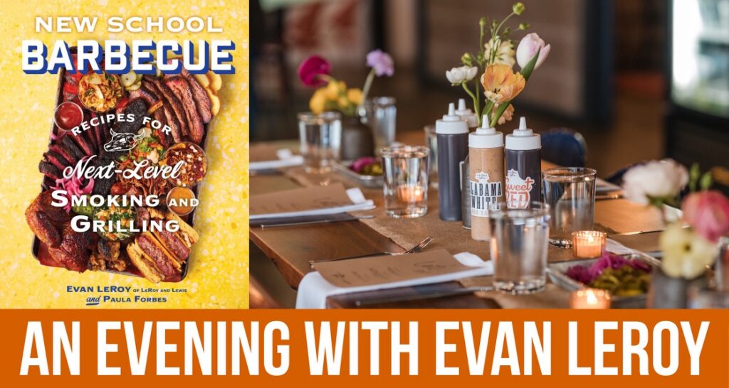 Join us for an exclusive evening with Evan LeRoy, celebrating his new book, New School Barbecue: Recipes for Next-Level Smoking and Grilling.